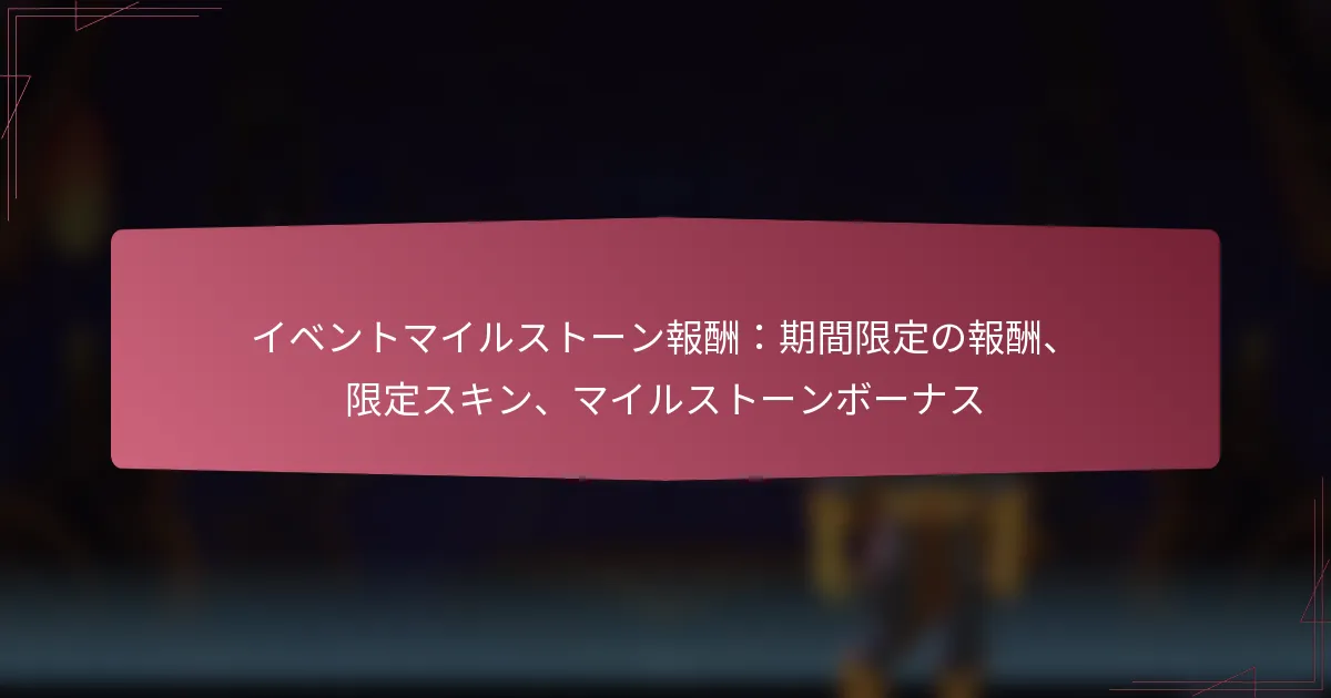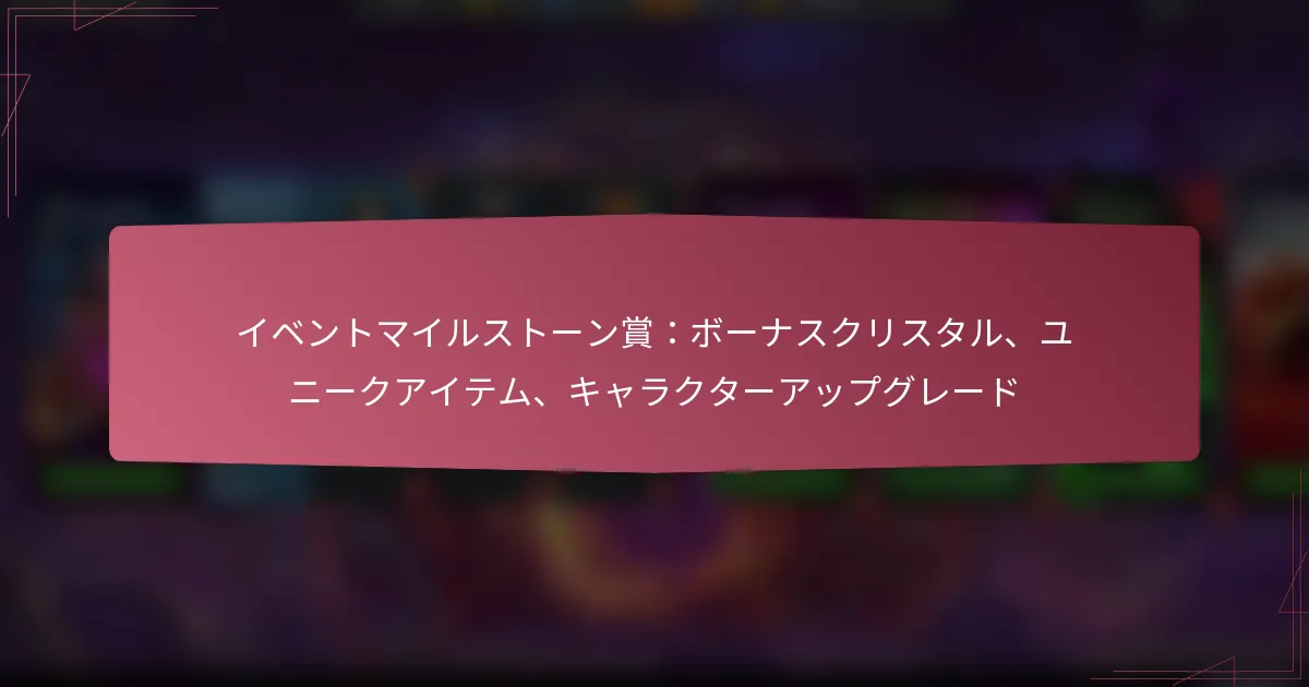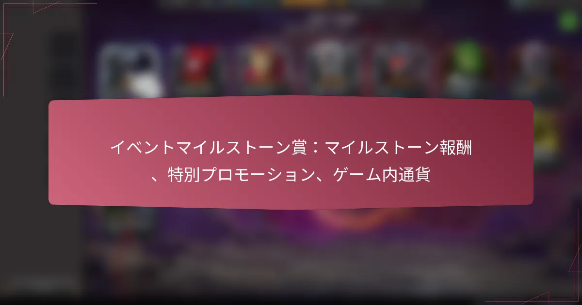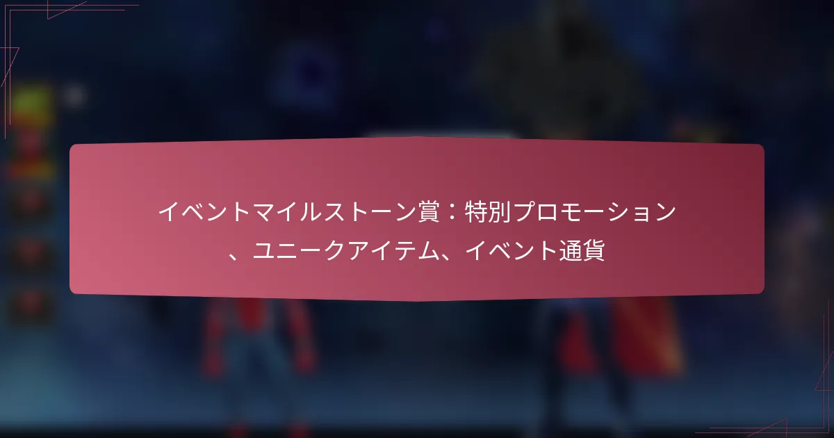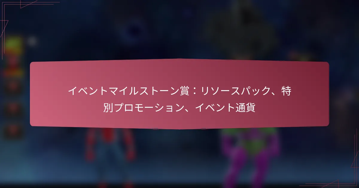 10/03/2026マーベル・コンテスト・オブ・チャンピオンズにおけるイベントマイルストーン賞は、プレイヤーがゲーム内イベント中に特定の目標を達成することで得られる貴重な報酬です。これらの賞にはユニット報酬、限定アイテム、キャラクターシャードが含まれており、ゲーム体験を大幅に向上させ、プレイヤーに進行のための戦略的な利点を提供します。 Key sections in the article: Toggle マーベル・コンテスト・オブ・チャンピオンズにおけるイベントマイルストーン賞とは? マイルストーン賞の定義と目的 利用可能なマイルストーン賞の種類 マイルストーン賞がゲームプレイを向上させる方法 イベントの期間と構造 参加資格の基準 ユニット報酬とは何か、どのように機能するのか? 利用可能なユニット報酬の種類 イベント中にユニット報酬を得る方法 ユニット報酬の戦略的利点 ユニット報酬と他のゲーム内通貨の比較 イベントマイルストーンから得られる限定アイテムとは? 利用可能な限定アイテムの種類 限定アイテムの希少性と重要性 限定アイテムがゲームプレイに与える影響 イベント外での限定アイテムの入手可能性 マーベル・コンテスト・オブ・チャンピオンズにおけるキャラクターシャードの機能とは? キャラクターシャードの定義と目的 シャードを使用してアンロックまたはアップグレードできるキャラクター キャラクターシャードを効果的に集めるための戦略 キャラクターのアップグレードがゲームプレイに与える影響 マーベル・コンテスト・オブ・チャンピオンズにおけるイベントマイルストーン賞とは? イベントマイルストーン賞は、マーベル・コンテスト・オブ・チャンピオンズのゲーム内イベント中に特定の目標を達成することでプレイヤーが得られる報酬です。これらの賞にはユニット報酬、限定アイテム、キャラクターシャードが含まれ、全体的なゲーム体験を向上させます。 マイルストーン賞の定義と目的 マイルストーン賞は、イベントへのプレイヤー参加を促すために設計された構造化された報酬です。これにより、プレイヤーはチャレンジをクリアし、設定された目標を達成することで、ゲームにより深く関与することが奨励されます。 これらの賞の主な目的は、プレイヤーのコミットメントとスキルに対して報いることで、ゲームプレイやキャラクターの成長を向上させる具体的な利益を提供することです。貴重なアイテムを提供することで、これらのマイルストーンはイベント全体を通じてプレイヤーの興味とモチベーションを維持するのに役立ちます。 利用可能なマイルストーン賞の種類 イベントマイルストーン賞はさまざまな形態で提供され、それぞれ独自の利点があります。最も一般的な種類には以下が含まれます: ユニット報酬:アイテムやリソースを購入するために使用できるゲーム内通貨です。 限定アイテム:イベント外では入手できないユニークな装備や強化アイテムです。 キャラクターシャード:キャラクターをアンロックまたはアップグレードするために使用されるパーツで、能力を向上させます。 各タイプの賞は特定の目的を持ち、プレイヤーの全体的な戦略とゲーム内での進行に寄与します。 マイルストーン賞がゲームプレイを向上させる方法 マイルストーン賞は、プレイヤーにキャラクターや全体的な体験を向上させるリソースを提供することで、ゲームプレイを大幅に向上させます。例えば、ユニット報酬はプレイヤーが必須アイテムを購入することを可能にし、限定アイテムは競争上の優位性を与えることができます。 キャラクターシャードは特に貴重で、新しいヒーローをアンロックしたり、既存のキャラクターをアップグレードしたりすることができ、戦闘をより簡単で楽しいものにします。この進行システムは、プレイヤーが将来のイベントに参加し続けるように促します。 イベントの期間と構造 マイルストーン賞を特徴とするイベントは通常、限られた期間で開催され、数日から数週間の範囲で行われます。各イベントには、プレイヤーが報酬を得るために達成する必要がある特定の目標を示す明確な構造があります。 イベント中、プレイヤーはマイルストーンに向けてポイントを蓄積するために、さまざまなタスクやチャレンジを完了する必要があります。獲得するポイントが多いほど、アンロックできる賞品が良くなり、イベントの期間中に継続的な参加を促します。 参加資格の基準 マイルストーン賞を提供するイベントに参加するには、プレイヤーは通常、特定の参加資格基準を満たす必要があります。これには、最低限のアカウントレベルを持っていることや、特定の予備チャレンジを完了することが含まれる場合があります。 さらに、プレイヤーはイベント期間中にアクティブでなければならず、マイルストーンに向けてポイントを獲得する必要があります。参加しなかったり、要件を満たさなかったりすると、貴重な報酬を逃す可能性が