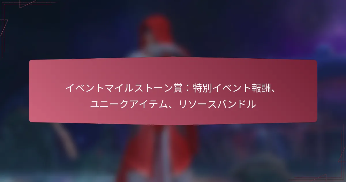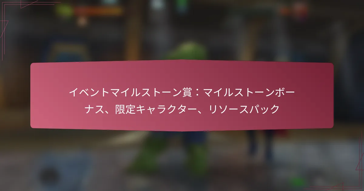 17/02/2026マーベル・コンテスト・オブ・チャンピオンズのイベントマイルストーン賞は、ゲーム内イベント中に特定の目標を達成することでプレイヤーに報酬を与えます。参加することで、プレイヤーは独占的なオファー、ボーナス報酬、ゲームプレイやカスタマイズオプションを向上させるユニークなスキンをアンロックできます。 Key sections in the article: Toggle マーベル・コンテスト・オブ・チャンピオンズのイベントマイルストーン賞とは? イベントマイルストーン賞の定義と目的 利用可能な賞の種類 イベントにおけるマイルストーンの重要性 報酬がゲームプレイ体験を向上させる方法 過去のイベントマイルストーン賞の例 プレイヤーはイベント中にどのように独占的オファーを獲得できますか? 独占的オファーの資格基準 独占的オファーを獲得する手順 オファーを請求する際の一般的な落とし穴 独占的オファーの利用規約 イベントマイルストーン賞で利用できるボーナス報酬は何ですか? 提供されるボーナス報酬の種類 ボーナス報酬を獲得する方法 ボーナス報酬を最大化するための戦略 時間制限のあるボーナス報酬とその重要性 プレイヤーはイベントマイルストーン賞を通じてどのようなユニークなスキンを取得できますか? 利用可能なユニークなスキンの説明 ユニークなスキンをアンロックする方法 ユニークなスキンの特別な機能 過去のイベントからのユニークなスキンの比較 マーベル・コンテスト・オブ・チャンピオンズのイベントマイルストーン賞とは? マーベル・コンテスト・オブ・チャンピオンズのイベントマイルストーン賞は、ゲーム内イベント中に特定の目標を達成することでプレイヤーが得られる報酬です。これらの賞はプレイヤーのエンゲージメントを高め、ゲームプレイやカスタマイズを向上させるユニークなアイテムを提供します。 イベントマイルストーン賞の定義と目的 イベントマイルストーン賞は、期間限定イベント中に特定のマイルストーンを達成したプレイヤーに与えられる構造化された報酬です。これらの賞の主な目的は、参加を促し、プレイヤーがイベントの目標を達成するように奨励することです。 価値のある報酬を提供することで、ゲームはプレイヤーの定着率と満足度を向上させることを目指しています。プレイヤーは、より高いマイルストーンを目指して深くゲームに関与するようになります。 利用可能な賞の種類 イベントマイルストーン賞は、さまざまな形式で提供され、異なるプレイヤーの好みやゲームプレイスタイルに対応しています。一般的な種類には以下が含まれます: 独占的オファー: イベント外では入手できない期間限定アイテム。 ボーナス報酬: ユニット、ゴールド、触媒素材などの追加リソース。 ユニークなスキン: 視覚的なカスタマイズを提供する特別なキャラクタースキン。 これらの賞は、プレイヤーのロースターやゲーム全体の体験を大幅に向上させることができます。 イベントにおけるマイルストーンの重要性 マイルストーンは、ゲーム内イベントの構造を形成する上で重要な役割を果たします。プレイヤーに明確な目標を提供し、進捗を追跡しやすくし、モチベーションを維持します。達成した各マイルストーンは、達成感と満足感をもたらします。 さらに、マイルストーンはプレイヤー間の競争的な雰囲気を生み出し、互いに優れた成果を上げようとすることで、最高の報酬を獲得することを目指します。この競争的な要素は、コミュニティのエンゲージメントを高め、プレイヤー間の友情を育むことができます。 報酬がゲームプレイ体験を向上させる方法 イベントマイルストーン報酬から得られる賞は、プレイヤーにパフォーマンスを向上させるためのツールやリソースを提供することで、ゲームプレイ体験を大幅に向上させることができます。独占的アイテムは新しい戦略やプレイスタイルを導入し、ゲームをよりダイナミックにします。 さらに、ユニークなスキンはプレイヤーがキャラクターをパーソナライズできるようにし、より没入感のある体験を生み出します。ゲームプレイの向上と視覚的なカスタマイズの組み合わせは、プレイヤーが長期間ゲームに投資し続ける要因となります。 過去のイベントマイルストーン賞の例 過去のイベントでは、プレイヤーはさまざまなエキサイティングな賞を獲得する機会がありました。例えば、「アニバーサリーセレブレーション」では、プレイヤーは独占的なキャラクタースキンや強力なボーナス報酬をアンロックすることができました。 別の例として「サマーイベント」では、プレイヤーは特定のマイルストーンに到達することでユニットやユニークな触媒を獲得しました。これらの過去の賞は、イベントマイルストーン報酬の多様性と魅力を示し、今後のイベントへの継続的な参加を促します。 プレイヤーはイベント中にどのように独占的オファーを獲得できますか? プレイヤーは、ゲー