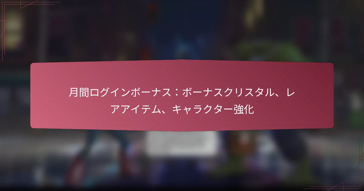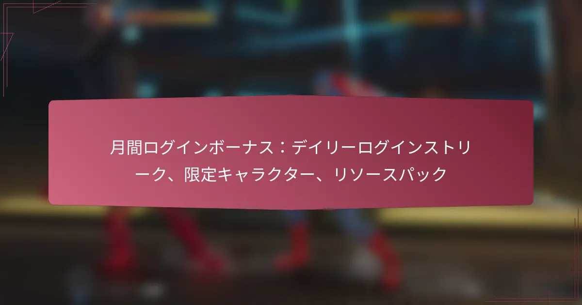 11/02/2026月間ログインボーナスは、プレイヤーが「マーベル・コンテスト・オブ・チャンピオンズ」のようなゲームに継続的に参加することで報酬を得る素晴らしい方法です。これらのボーナスには、ゲーム内通貨、貴重なアイテム、ユニークなキャラクターが含まれることが多く、マイルストーン報酬や特別なプロモーションがプレイヤーに定期的にログインするインセンティブを与えます。参加することで、プレイヤーはゲーム体験を向上させ、興奮を保つための期間限定オファーを利用できます。 Key sections in the article: Toggle 「マーベル・コンテスト・オブ・チャンピオンズ」における月間ログインボーナスとは? 月間ログインボーナスの定義と目的 ゲーム内での月間ログインボーナスの機能 月間ログインボーナスに参加するメリット 月間ログインボーナスの対象基準 月間ログインボーナスに関する一般的な誤解 月間ログインボーナスのマイルストーン報酬とは? マイルストーン報酬の構造の概要 過去のマイルストーン報酬の例 マイルストーン報酬を達成する方法 特定のマイルストーン報酬を解除するための基準 マイルストーン報酬がゲームプレイに与える影響 月間ログインボーナスに関連する特別プロモーションとは? 利用可能な特別プロモーションの種類 期間限定イベントと季節ごとのプロモーションの詳細 特別プロモーションに参加する方法 特別プロモーションの資格要件 過去のコラボレーションとその報酬の例 月間ログインボーナスを通じて得られるゲーム内通貨とは? 利用可能なゲーム内通貨の種類 「マーベル・コンテスト・オブ・チャンピオンズ」における月間ログインボーナスとは? 「マーベル・コンテスト・オブ・チャンピオンズ」における月間ログインボーナスは、プレイヤーが1ヶ月の間に継続的にゲームにログインすることで受け取る報酬です。これらのボーナスには通常、ゲーム内通貨、アイテム、キャラクターが含まれ、定期的な参加を促し、ゲーム体験を向上させます。 月間ログインボーナスの定義と目的 月間ログインボーナスは、プレイヤーが1ヶ月の間に連続してゲームにログインすることで与えられる構造化された報酬です。主な目的は、日々のプレイを促進し、プレイヤーの興味を維持することです。貴重な報酬を提供することで、ゲームは定期的な参加の習慣を育みます。 これらのボーナスは月ごとに異なる場合があり、ゲーム内の特別なイベントやアップデートに基づいてテーマが設定されることがよくあります。これにより、報酬が新鮮で刺激的になり、プレイヤーが定期的にチェックインする動機付けとなります。 ゲーム内での月間ログインボーナスの機能 プレイヤーは、毎日ゲームにログインすることで月間ログインボーナスを受け取ることができます。報酬は通常、連続ログインに伴い価値が増し、1ヶ月間毎日ログインしたプレイヤーには大きなボーナスが与えられます。例えば、最初の数日間は小さな報酬が提供され、最後の数日間にはより大きなアイテムや通貨が得られることがあります。 進捗を追跡するために、プレイヤーはゲーム内で自分がログインした日や利用可能な報酬を示すカレンダーや通知を確認できます。この透明性は、プレイヤーが月を完了するためのモチベーションを維持するのに役立ちます。 月間ログインボーナスに参加するメリット 月間ログインボーナスに参加することは、プレイヤーに多くのメリットを提供します。まず、ゲーム内通貨やアイテムの安定した供給を提供し、ゲームプレイや進行を向上させることができます。プレイヤーはこれらの報酬を使用してキャラクターをアップグレードしたり、新しいアイテムを購入したりすることができ、ゲーム体験をより楽しめるようになります。 さらに、これらのボーナスはプレイヤーがゲームによりつながりを感じるのに役立ちます。定期的な参加はコミュニティや帰属意識を育むものであり、特にプレイヤーが友人と報酬や戦略を共有する際にその感覚が強まります。 月間ログインボーナスの対象基準 一般的に、「マーベル・コンテスト・オブ・チャンピオンズ」にアクティブなアカウントを持つすべてのプレイヤーが月間ログインボーナスの対象となります。アカウントを持ち、定期的にログインすること以外に特別な要件はありません。ただし、プレイヤーはアカウントが良好な状態であり、制限を受けていないことを確認する必要があります。 報酬を最大化するためには、プレイヤーは連続した日数ログインする必要があることに注意が必要です。1日でもログインを逃すとボーナスの進行がリセットされる可能性があり、最高の報酬を目指すプレイヤーにとっては一般的な落とし穴となることがあります。 月間ログインボーナスに関する一般的な誤解 一般的な誤解の一つは、プレイヤーがボーナスの資格を得るために毎日同じ時間にログインする必要があるというものです。実際